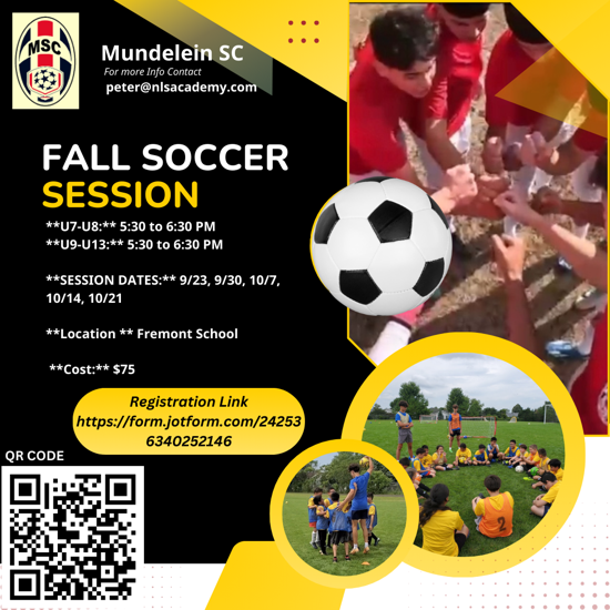 Mundelein Soccer Club is excited to offer a fun and challenging Fall training program running through October 23rd!